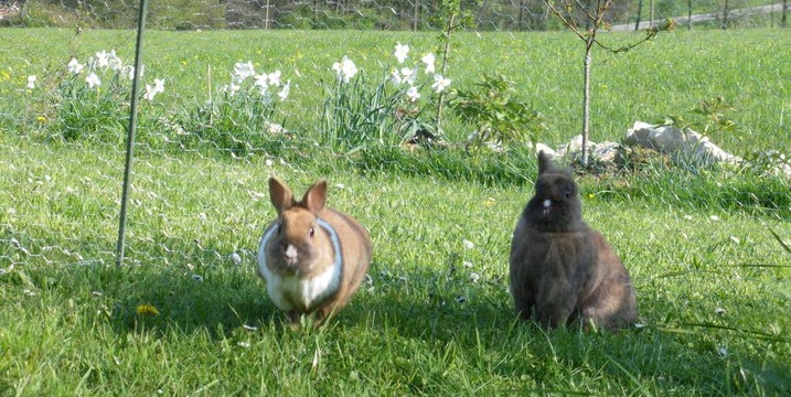 Nur mit dauerhaftem Freilauf, d.h. mindestens 3 qm pro Kaninchen (bis max. 3 kg Körpermasse) rund um die Uhr, können wir den Bedürfnissen der Tiere gerecht werden.