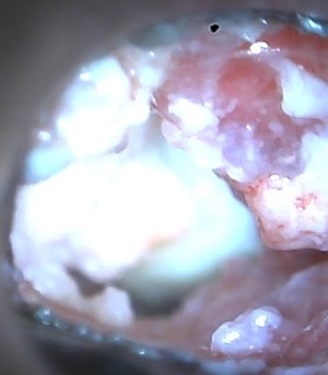 Ein tiefer Abstrich mit einem Wattestäbchen dient der näheren Bestimmung von Ablagerungen im Ohr. Nach Färbung des Präparats untersucht der Tierarzt es unter dem Mikroskop auf Bakterien, Milben, Hefepilze und Entzündungszellen. So können auch Eiter und Entzündungssekrete von harmlosem Ohrenschmalz unterschieden werden.