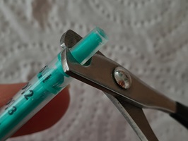 Die Zwangsfütterung kann alternativ zum Päppeln mit der Spritze auch über eine Nasen-Schlund-Sonde erfolgen, die der Tierarzt durch die Nasenöffnung bis in den Magen vorschiebt, anschließend mit wenigen Stichen im Kopfbereich festnäht und bei Bedarf mehrere Tage so belässt.
