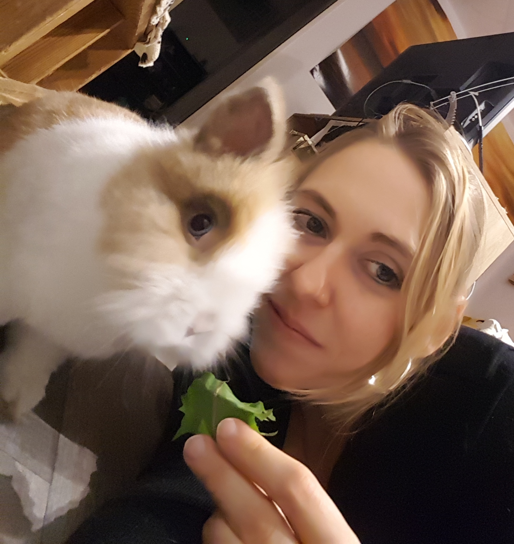 Zu den liebsten Beschäftigung zutraulicher Kaninchen gehört die Interaktion mit "ihrem" Menschen: Er wird fröhlich begrüßt, beschnuppert, umkreist, gelegentlich auf Schritt und Tritt verfolgt und wenn es sich anbietet, wird auch gerne einmal auf ihm herumgeklettert oder es sich auf seinem Schoß bequem gemacht.