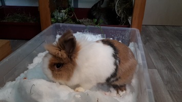 Im Winter freuen sich Wohnungs- und ggf. auch Balkonkaninchen über mit Schnee gefüllte Kisten oder größere Schalen. Der Schnee wird intensiv beschnuppert und zerwühlt. Noch spannender wird es, wenn Sie kleine Gemüsestückchen im Schnee verstecken, die dann ausgegraben werden müssen. Letzteres ist auch eine tolle Beschäftigung für Kaninchen, die im Gartengehege leben.