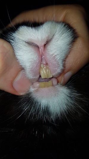 Insbesondere Zwergkaninchen leiden oft unter einer Missbildung des Oberkiefers, einer sogenannten Brachygnathia superior. Dabei ist der Oberkiefer kürzer als der Unterkiefer, die unteren Schneidezähne befinden sich also weiter vorn als die oberen. Ein gegenseitiger Abrieb ist in diesem Fall nicht möglich und die Zähne wachsen ungehindert aneinander vorbei. Auch mit einer gesunden Ernährung kann keine Besserung erzielt werden. Die Problematik ist mit bloßem Auge sichtbar.