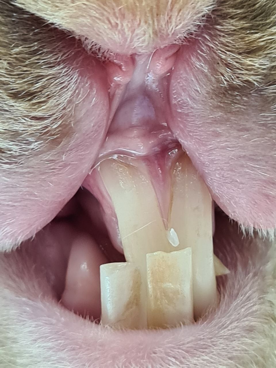 Sind alle Schneidezähne auffällig lang oder ist das obere Paar deutlich länger oder kürzer als das untere, ist eine weitere Abklärung und Korrektur notwendig. Möglicherweise stehen die Schneidezähne nicht optimal aufeinander oder die Backenzahnkronen sind zu lang: In beiden Fällen ist der Abrieb der Schneidezähne beeinträchtigt.